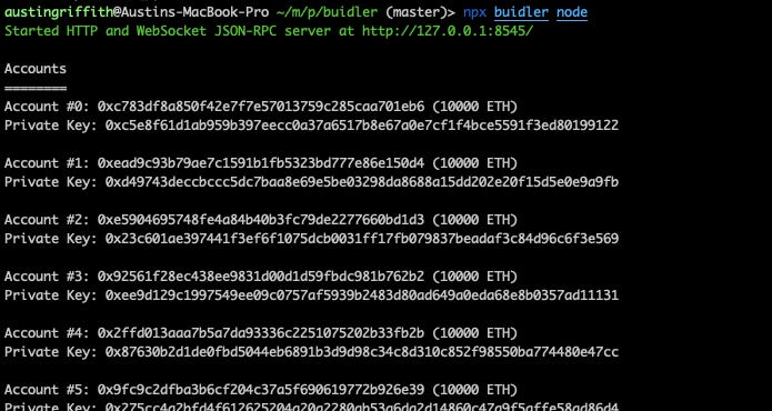 Now that we have Builder installed, let’s use it to start a local blockchain: