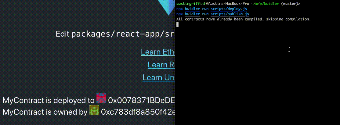 🧐 Our goal is to create a smart contract backend and frontend at the same time: a hot reloading app on contract edit.