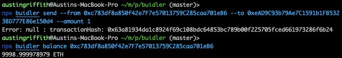 npx buidler send --from 0xc783df8a850f42e7F7e57013759C285caa701eB6 --to 0xeAD9C93b79Ae7C1591b1FB5323BD777E86e150d4 --amount 1