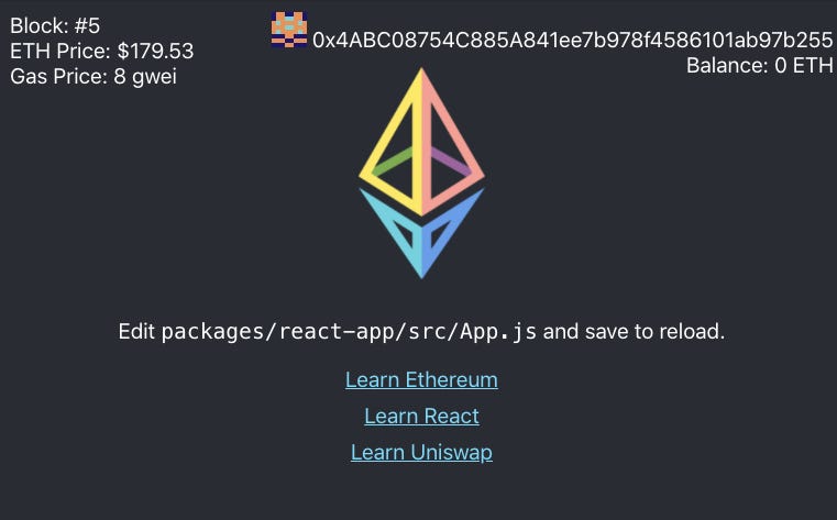 👩🚀📡 [ UPDATE — May 1, 2020 ]: The best way to get started with this dapp development stack is to fork 🏗 scaffold-eth. It abstracts away a lot of the installation and setup that this guide covers.